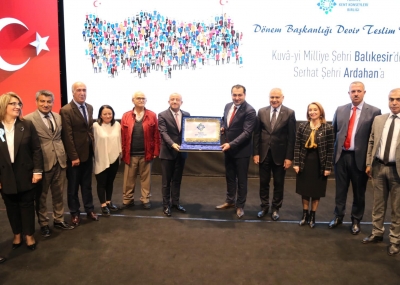 Türkiye Kent Konseyleri Birliği Devir-Teslim Töreni, sempozyum kapsamında Balıkesir’de gerçekleştirildi. Dönem başkanlığı, Kuva-yi Milliye Şehri Balıkesir’den, Serhat Şehri Ardahan’a devredildi.