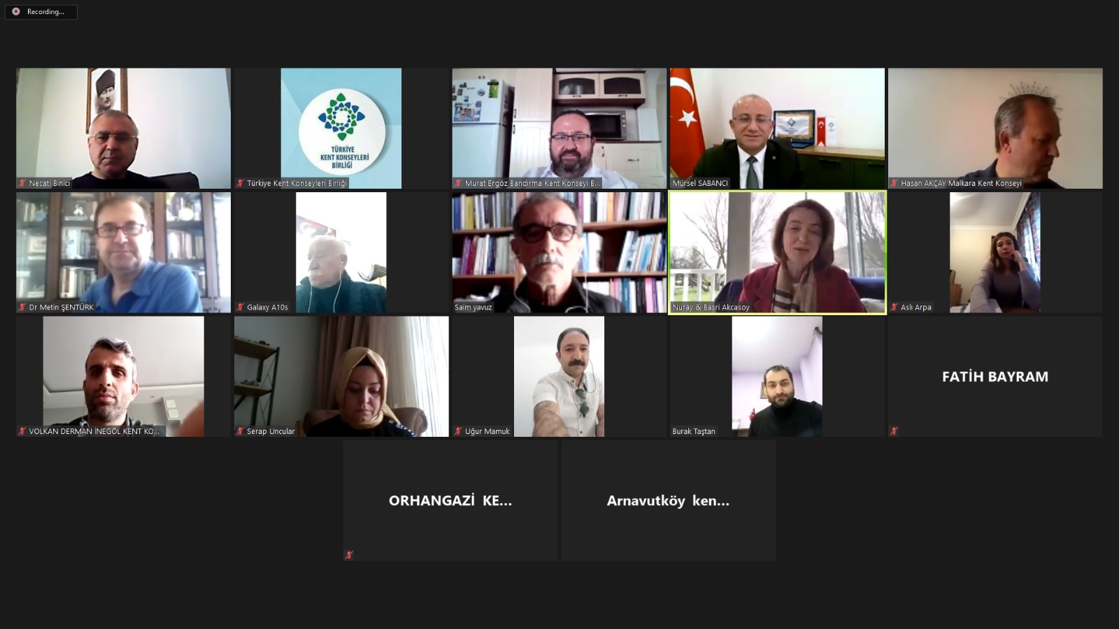 Türkiye Kent Konseyleri Birliği 2. Bölge toplantısı, Amasra Kent Konseyi, Arnavutköy Kent Konseyi, Bandırma Kent Konseyi, Beykoz Kent Konseyi, Burhaniye Kent Konseyi, Gölcük Kent Konseyi, Güngören Kent Konseyi, İnegöl Kent Konseyi, Malkara Kent Konseyi, Orhangazi Kent Konseyi'nin katılımlarıyla Zoom üzerinden gerçekleştirildi.