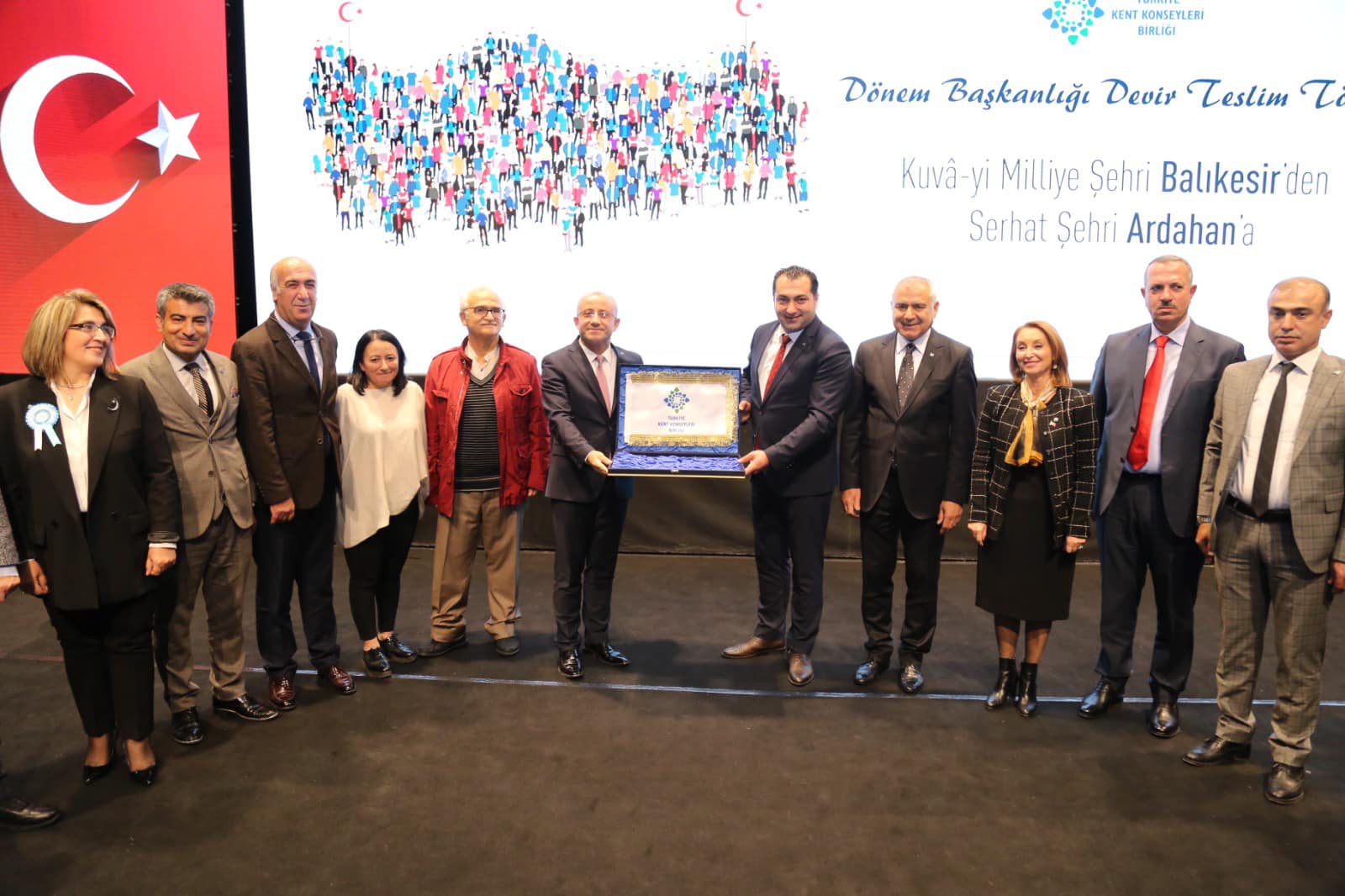 Türkiye Kent Konseyleri Birliği Devir-Teslim Töreni, sempozyum kapsamında Balıkesir’de gerçekleştirildi. Dönem başkanlığı, Kuva-yi Milliye Şehri Balıkesir’den, Serhat Şehri Ardahan’a devredildi.