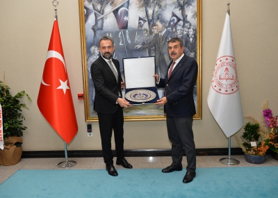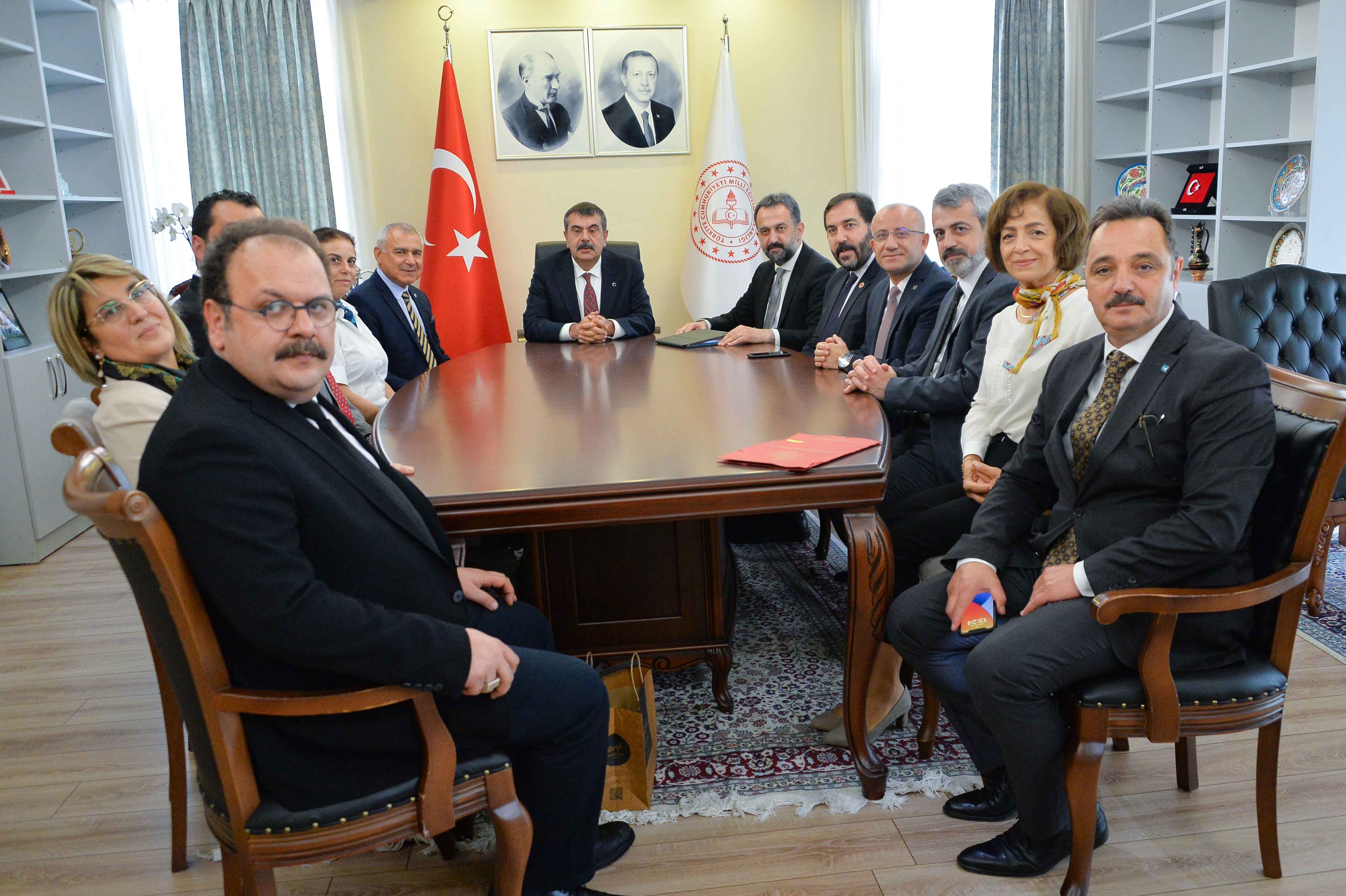 Türkiye Kent Konseyleri Birliği Başkanı Sayın Halil İbrahim Yılmaz ve Yönetim Kurulu üyeleri, yeni görevini kutlamak ve Kent Konseyleriyle birlikte yürütülecek iş birliğini geliştirmek amacıyla Milli Eğitim Bakanı Sayın Prof. Dr. Yusuf Tekin'i makamında ziyaret etti.