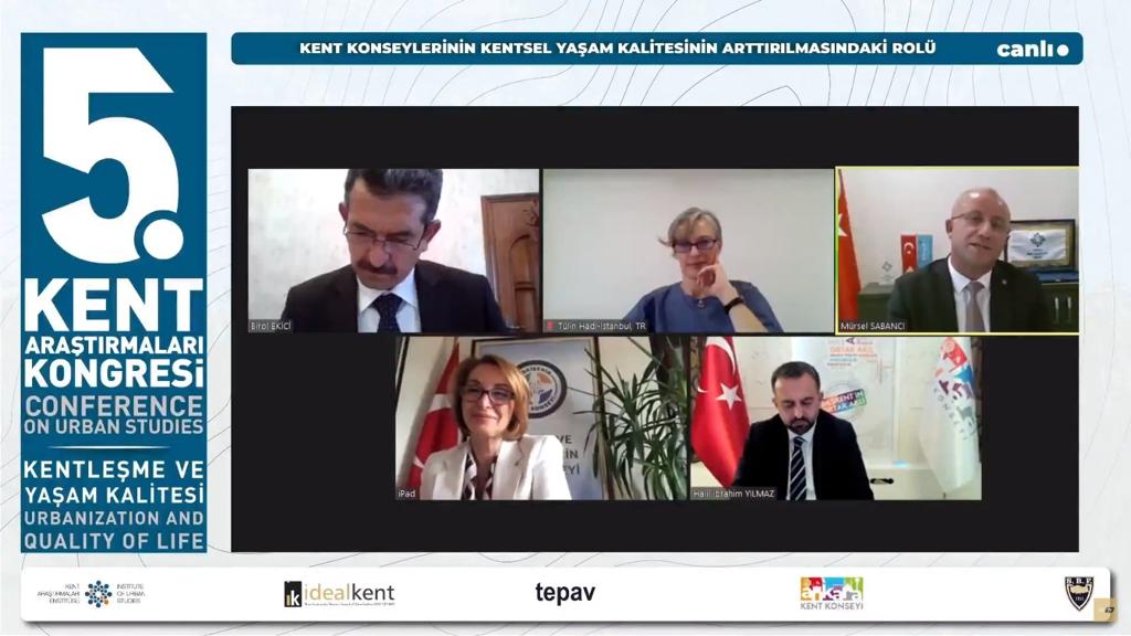 Kent Araştırmaları Enstitüsü tarafından bu yıl 5. si düzenlenen Kent Araştırmaları Kongresinde KENTLEŞME ve YAŞAM KALİTESİ teması altında "Kent Konseylerinin Kentsel Yaşam Kalitesinin Artırılmasındaki Rolü" başlığıyla Türkiye Kent Konseyleri Birliği Başkanı Mürsel SABANCI'nın da konuşmacı olarak katılım sağladığı bir panel oturumu gerçekleştirildi"